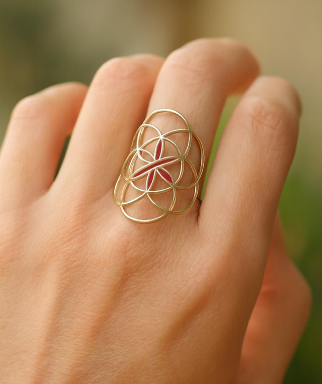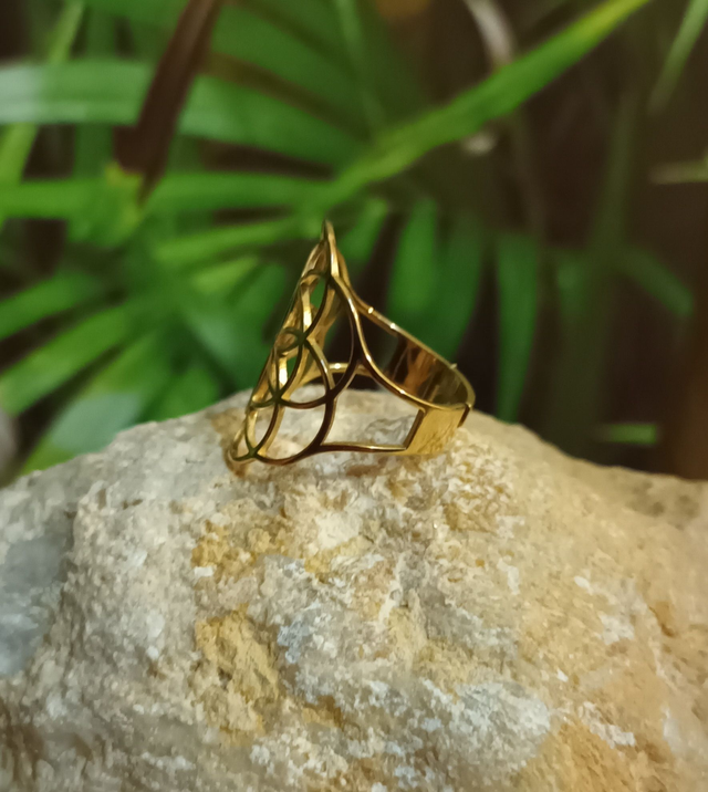 La bague Fleur de Vie dorée en acier inoxydable est un bijou symbolique qui allie élégance et énergie positive. Représentation sacrée de l’harmonie universelle, la Fleur de Vie évoque la création, la vitalité et l’équilibre intérieur.