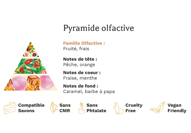 • Senteur : Parfum de Grasse (10%) – fraise et menthe