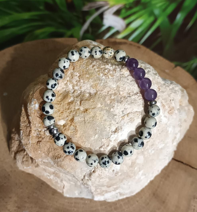 Bracelet en jaspe dalmatien et améthyste