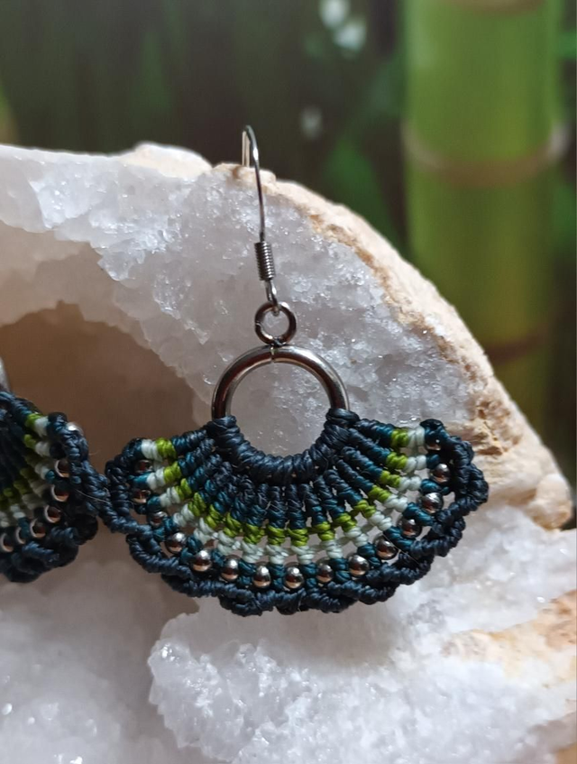 Ces boucles d’oreilles en acier inoxydable sont réalisées à la main en micro-macramé, avec un tressage fin et précis. Elles sont ornées de petites perles en acier inoxydable, qui apportent une touche discrète et moderne. Conçues sans plomb, sans cadmium et sans nickel, elles sont hypoallergéniques et agréables à porter au quotidien. Avec des dimensions d’environ 5 cm de hauteur et 4 cm de largeur, elles offrent une finition soignée et un style artisanal qui s’accorde facilement à toutes les tenues.